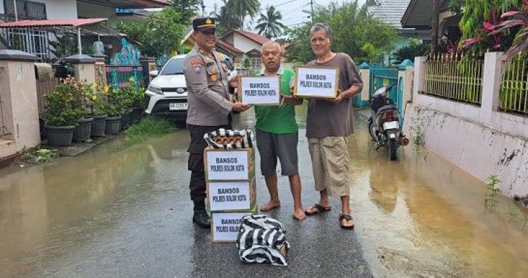 SOLOK KOTA — Kepolisian Resor Solok Kota menunjukkan kepedulian nyata terhadap masyarakat yang terdampak banjir dengan melaksanakan kegiatan penyaluran bantuan sosial berupa paket sembako pada Selasa, 25 November 2025. Kegiatan kemanusiaan ini dipimpin oleh Kapolres Solok AKBP Mas'Ud Ahmad, S.IK, M.Si, melalui Kasat Binmas Polres Solok Kota AKP Jufrinaldi, SH, bersama personel Binmas dengan menyasar berbagai wilayah terdampak banjir di wilayah hukum Polres Solok Kota.